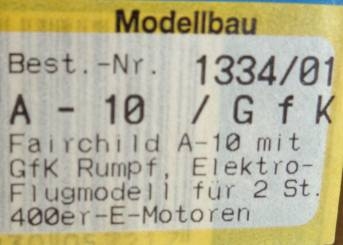 1334/00 A-10 Thunderbolt II (Ganzholzbauweise) Best.-Nr. 1334/01 (GfK-Rumpf)
