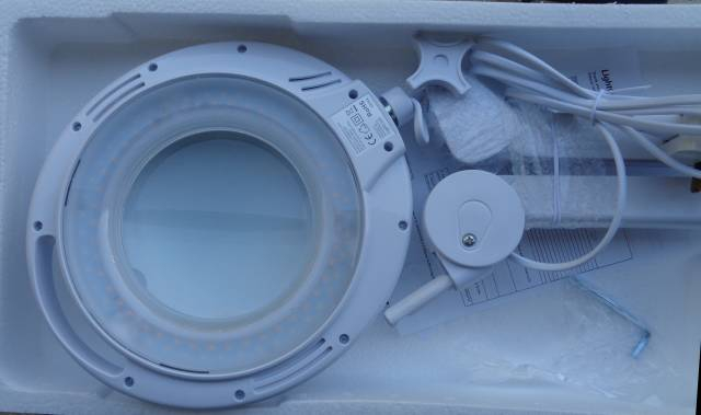 Eine professionelle Lupe mit sparsamer LED Beleuchtung und einstellbarer Farbtemperatur von einem warmen Farbton bis Tageslichtweiß. Im Lieferumfang sind 2 Linsen mit 125 mm Durchmesser in 3 Dioptrien (1,75x Vergrößerung) und 5 Dioptrien (2,25x Vergrößerung) enthalten. Einfacher Wechsel der Glaslinsen in wenigen Sekunden. Die Linse wird von einem geriffelten Kunststoffring gehalten. Um die Linse zu wechseln, dreht Sie den Ring ein kleines Stück bis sich die Arretierung gelöst hat. Dann kann man den Ring und Linse entnehmen. Für den Zusammenbau geht man in umgekehrter Richtung vor.