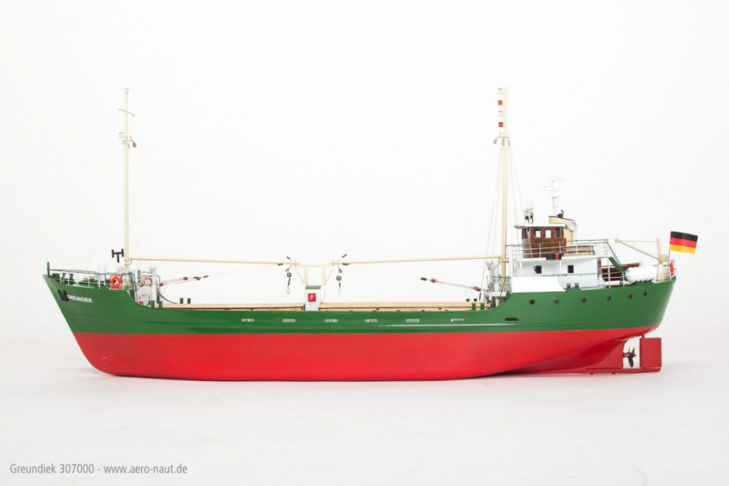 AE307000 MS Greundiek Küstenmotorschiff Arbeitsschiffe, Schiffsmodelle Schlagwort: Neuheit 2021 Schwierigkeitsgrad Bau: 4 / 5 (Fortgeschrittener) Modellausführung: Komplettbausatz Material Rumpf: ABS Technische Daten Länge ca. 931 mm Breite ca. 152 mm Tiefgang ca. 66 mm Produktart: Arbeitsschiffe Die Greundiek wurde 1949 als „Hermann-Hans“ auf der Rickmers Werft in Bremerhaven auf Kiel gelegt; der Stapellauf war im Januar 1950. Das Schiff war eines der ersten nach dem Zweiten Weltkrieg in Deutschland gebauten Schiffe und eines der ersten zivilen Schiffe in Vollschweißbauweise überhaupt. 1965 wurde die „Hermann-Hans“ an Henry Dölling verkauft, der das Schiff nach seiner Frau in „Rita Dölling“ umbenannte.