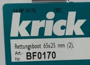 KRBF0170 Rettungsboot 65x25 mm (2) Beiboot aus Kunststoff. Einfach zu bemalen. VE = 2 Stück Abmessungen Länge ca. 65 mm Breite ca. 25 mm