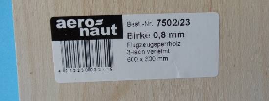 Birken-Flugzeug-Sperrholz 600 x 300 x 0.8 mm, 3-fach verl. wasserfest tegofilmverleimt, beidseitig geschliffen